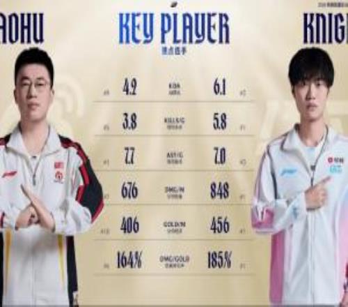 雙方中單數據對比:Knight多項數據領先于Xiaohu