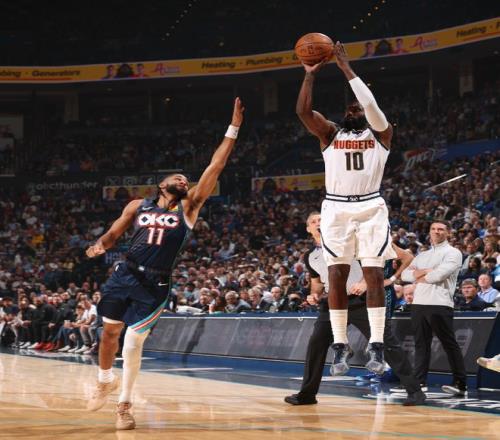 在去年雷霆奪冠之路上,最難纏的對手就是掘金,兩支球隊鏖戰七場才分出勝負,休賽期對陣容進行升級,渴望再次沖擊總冠軍的掘金,也展現出了不俗的競爭力,在遠征俄城之前,以37勝22負的戰績排名西部第四。