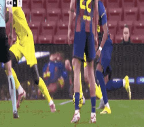 第92分鐘,佩德里的妙傳打穿比利亞雷亞爾防線,孔德助攻萊萬吃餅得手。