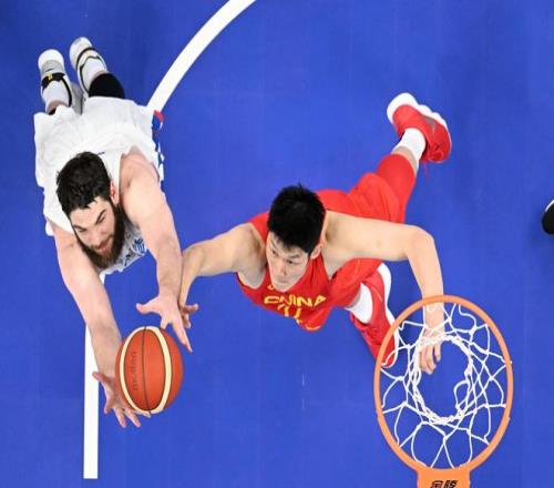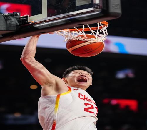 2月26日,中國隊球員胡金秋在比賽中扣籃。新華社記者 賈浩成 攝