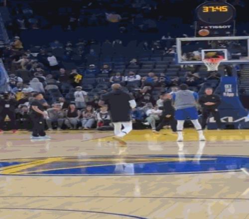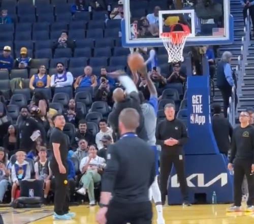 不講武德熱身時詹姆斯躲在追夢身后偷襲蓋帽&后二人激情相擁