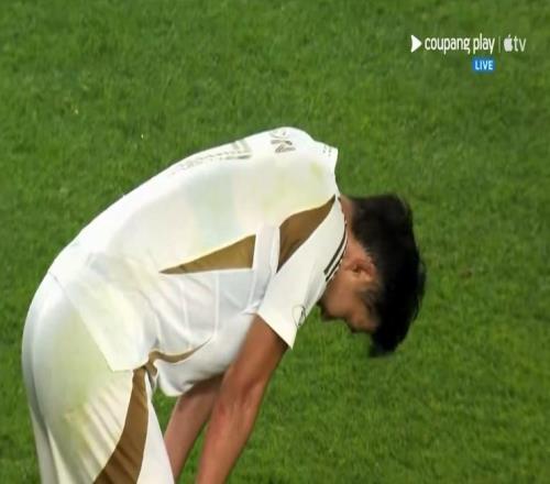第76分鐘,洛杉磯FC反擊,左路外腳背弧線傳球,孫興慜即將形成單刀,被阿古斯汀·博扎特拉倒,主裁再次出示紅牌,將博扎特罰出場↓