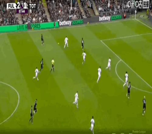 第11分鐘,熱刺中場搶斷,西蒙斯帶球推進反擊隨后傳球被斷