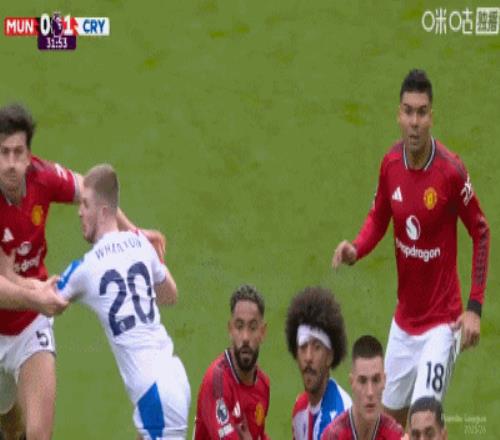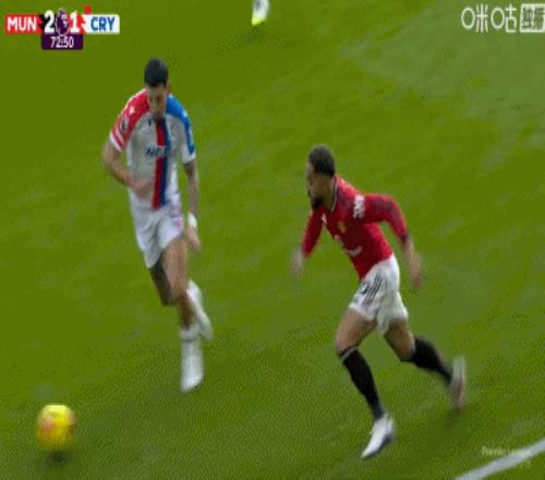 第57分鐘,拉克魯瓦拉拽庫尼亞送紅點,B費點射命中,曼聯1-1扳平水晶宮!