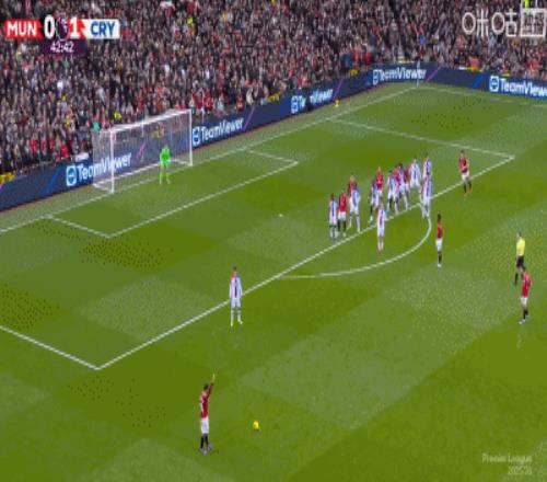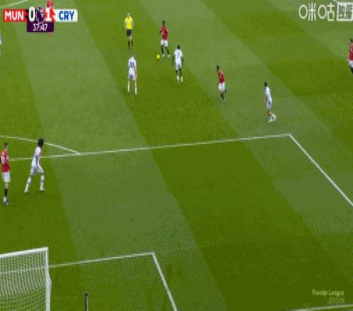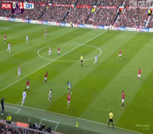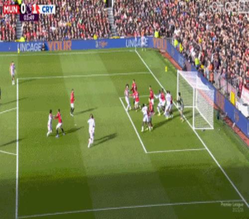 第4分鐘,約羅盯人不緊,拉克魯瓦角球頭球頂進死角,水晶宮1-0領先曼聯