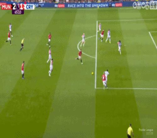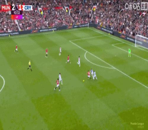 第65分鐘,B費45度傳中,謝什科頭球破門,曼聯2-1反超水晶宮