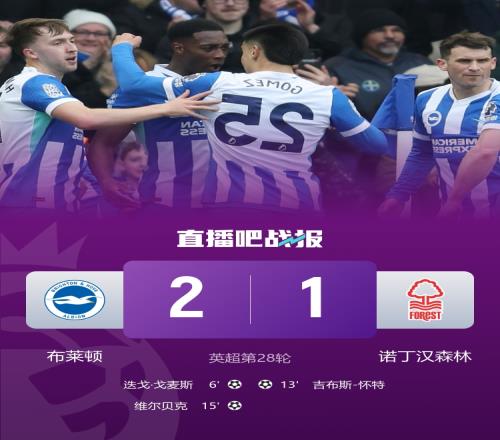 維爾貝克破門,布萊頓2-1戰勝諾丁漢森林。