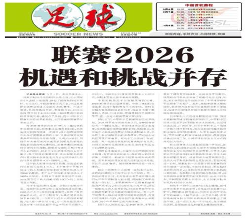 記者陳永報道3月1日,南京奧體中心,一場跌宕起伏的攻防轉換大戰之后,北京國安2比0擊敗上海海港,捧起了超級杯的冠軍獎杯。5天之后,中超聯賽將正式開啟,中國足球職業聯賽也將進入全新的2026賽季。在這個賽季,機遇和挑戰并存,更準確來說,已經在2025賽季創下上座紀錄的中超聯賽或許會面臨更多的機遇,挑戰在于外戰,而中甲和中乙聯賽則面臨更多的挑戰,尤其是城市聯賽異軍突起之后。