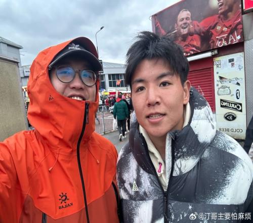 有球迷曬出與徐彬的合影,寫道:“幸運!今天在曼聯賽后偶遇中國U23隊長徐彬!留洋業余時間現場觀看高質量比賽,向偶像卡塞米羅取經學習,不斷進步,未來可期!中國足球加油!!”