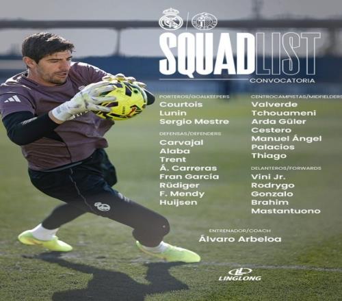 體育播報(bào)3月2日宣 本輪西甲皇馬將迎戰(zhàn)赫塔費(fèi),球隊(duì)官方也公布了本場(chǎng)比賽大名單,其中姆巴佩、卡馬文加缺席,羅德里戈、赫伊森回歸。具體如下: