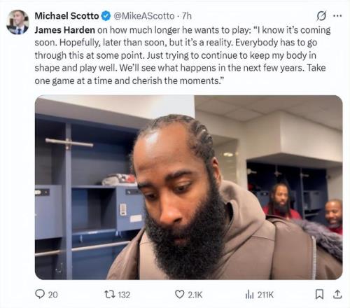 哈登賽后也談到自己的傷情,他表示:不考慮手術(shù)是為了盡早復(fù)出,一開(kāi)始手指的確很疼,我連球都抓不住,我一直在冰敷。周六感覺(jué)好一些就去了單獨(dú)的訓(xùn)練。這場(chǎng)比賽我失誤太多了,還無(wú)法很好的控制住球,只能讓拇指慢慢恢復(fù)。