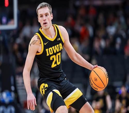 桑福特出生于2002年7月,現年23歲,身高201cm,體重98kg,是去年NBA選秀大會中的落選秀。在上賽季的NCAA賽場上,桑福特總共代表所在的愛荷華大學出場33次,場均出場時間達到了31.9分鐘,場均數據為16.7分6籃板2.9助攻0.8搶斷0.6蓋帽,還有1.8次失誤和2.6次犯規,投籃命中率40.7%,三分命中率34%,罰球命中率89.1%。桑福特其實在2023-24賽季的表現相當不錯,取得了長足的進步,一度也有著不錯的選秀行情。但是他最終沒有參加2024年的NBA選秀大會,而在上賽季他的表現并沒有取得實質性的提升,進攻效率反而大幅下降,這也導致了他最終成為了一名落選秀。
