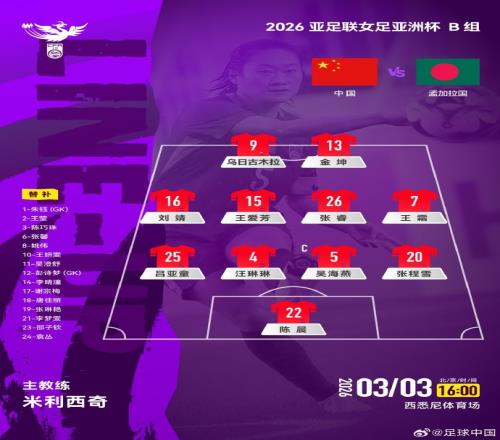 體育播報(bào)3月3日宣 女足亞洲杯,中國(guó)隊(duì)首戰(zhàn)孟加拉國(guó)女足首發(fā)名單公布,根據(jù)中國(guó)隊(duì)官方動(dòng)態(tài),中國(guó)女足以442陣型出戰(zhàn)。