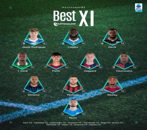 北京時(shí)間3月3日,意甲官方公布了聯(lián)賽第27輪的最佳陣容,盧卡庫、迪馬爾科、帕夫洛維奇入選。
