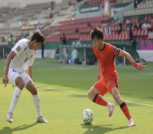 ↑1月17日,中國隊球員王鈺棟(右)在U23男足亞洲杯四分之一決賽比賽中。新華社記者 王海洲 攝