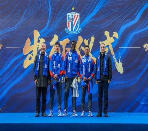楊勇、董珞向新援授新賽季球衣,樊建林、柳海光為新援戴上申花圍巾。儀式最后,申花隊全體成員登臺亮相,徐彬、過劍飛、楊勇為球隊授旗出征。