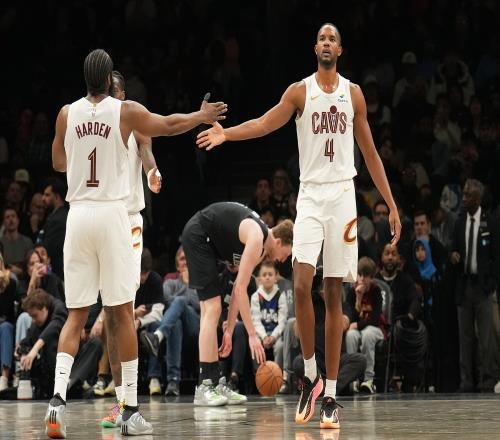 而且哈登的組織能力沒過多久就對騎士內線球員們產生了影響,尤其是賈勒特·阿倫。在與哈登并肩作戰的8場比賽中,阿倫拿下了6次兩雙,并在周日以106-102戰勝籃網的比賽中砍下了20分。根據ESPN的一項研究,哈登已經助攻阿倫打進了17個運動戰進球,這一數據在同期NBA所有組合中排名第4。