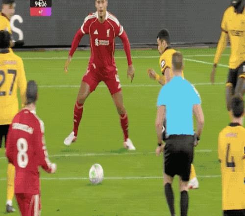 第78分鐘,狼隊打出快速反擊,在和范戴克的對抗中,阿洛克達爾有一個推人動作,羅德里戈·戈麥斯冷靜破門,狼隊主場取得領先。