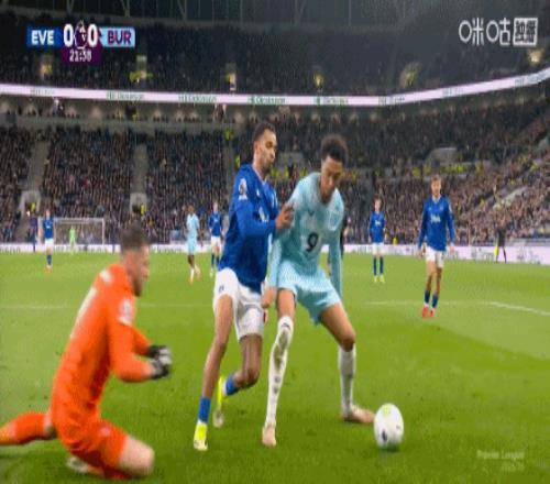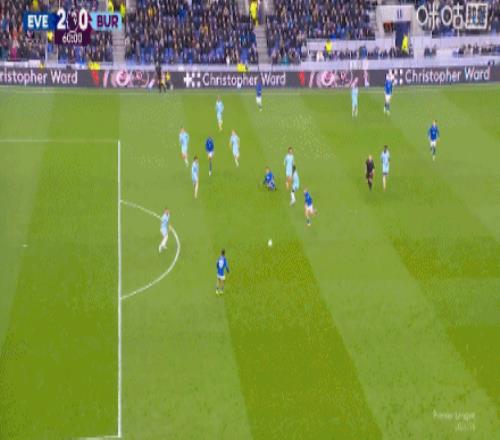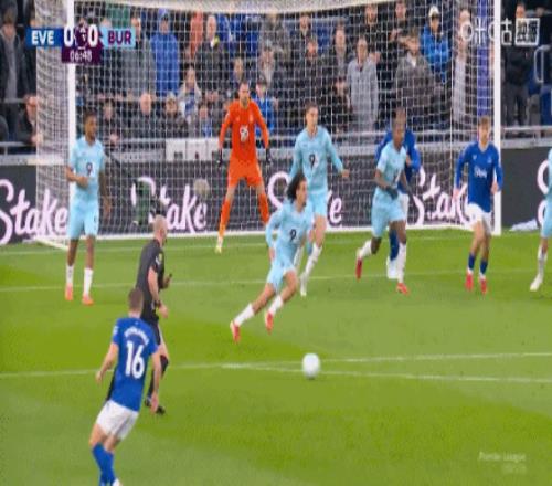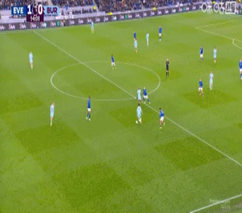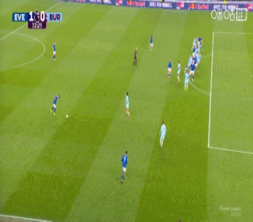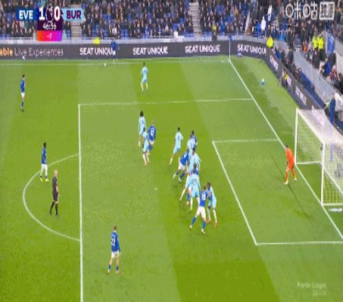 第59分鐘,恩迪亞耶助攻,霍爾輕挑破門,埃弗頓2-0伯恩利