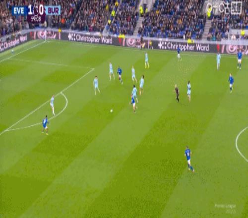 第31分鐘,加納任意球助攻,塔爾科夫斯基頭槌破門,埃弗頓1-0伯恩利