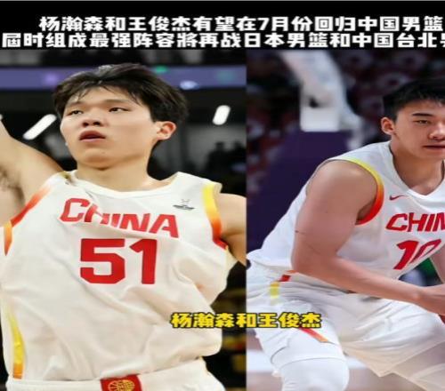 據報道,目前效力于NBA波特蘭開拓者的楊瀚森,以及在美國NCAA打球的王俊杰,都將在7月前正式回歸中國男籃,代表球隊出戰世預賽第三窗口期的比賽。