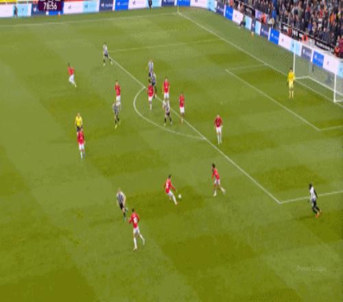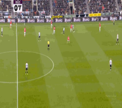 連續兩場迎來人數上的優勢,這本來是極為有利于曼聯的發揮,庫尼亞隨后在特里皮爾身上更是再次打出明顯優勢,但被紐卡堵住: