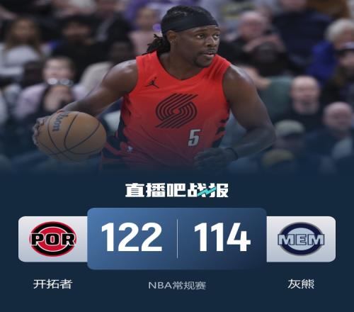 灰熊(23-38):韋爾斯24分3板2助2斷、GG·杰克遜20分4板1助3帽、普羅斯珀17分9板1助2斷、馬沙克13分1板1助、斯潘塞12分7板7助2帽、克萊頓12分2板8助2斷、斯莫爾11分7板5助2斷、呂佩爾5分5板2斷