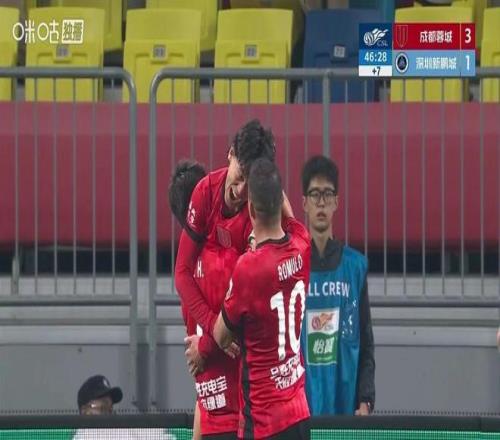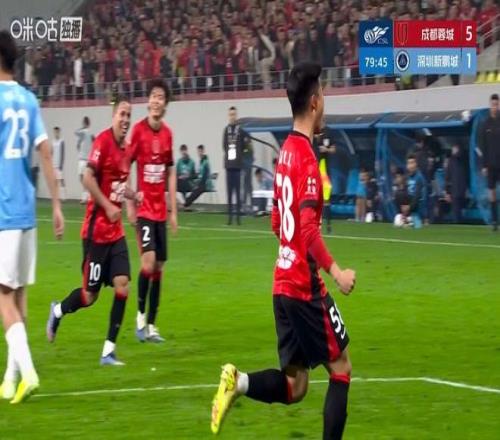 第79分鐘,羅慕洛送出寫意傳中,替補登場的小將廖榮祥頭球再下一城,成都蓉城再度擴大比分為5-1。