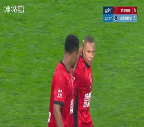 緊接著成都蓉城趁機扳平比分,第20分鐘費利佩助攻韋林頓攻入加盟首球,比分改寫為1-1。