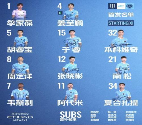 深圳新鵬城這邊,隊長是季家葆,后防線:隊長姜至鵬、南松打兩個邊后衛。胡睿寶、本科維奇和于睿組成三中衛。前場:周定洋領銜,身邊是張曉彬和阿代米,雙前鋒是韋斯利和夏爾扎提。
