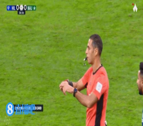 新月多打1人!多薩里造紅牌!第38分鐘,哈利勒撞翻單刀機會的多薩里,通過VAR,裁判直接出示紅牌罰下哈利勒!↓