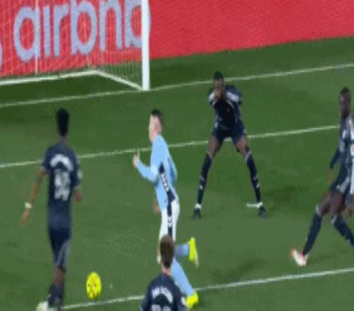 第94分鐘,莫蘭-洛佩斯前場斷球,威尼修斯左路傳中,楚阿梅尼禁區前沿分球右路,阿諾德回敲被解圍,巴爾韋德勁射,擊中馬科斯-阿隆索折射入網,皇馬上演讀秒絕殺好戲,2-1!