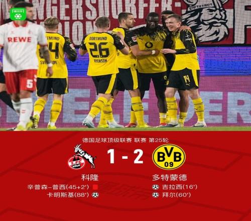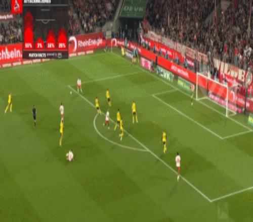 第17分鐘,拜爾頭球送助攻,吉拉西鏟射破門,多特1-0科隆