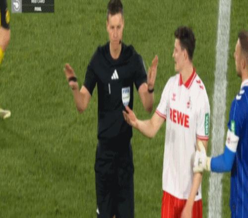 第90+5分鐘,科隆球員投訴揚-科托禁區內手球,裁判沒有表示