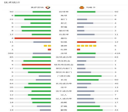 第82分鐘,奧薩蘇納球隊勞爾-加西亞吃到紅牌。