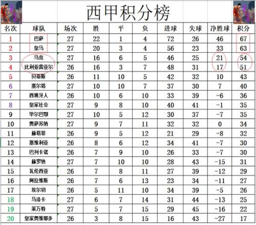 積分榜方面,巴薩今天險勝贏球后,再次將對皇馬的優(yōu)勢拉大到4分,穩(wěn)住榜首位置。馬競先賽贏球,領先比利亞雷亞爾3分,第3的位置暫時也是穩(wěn)住。保級方面,馬洛卡無力贏球,繼續(xù)深陷降級區(qū)。