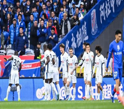 面對(duì)整體配置遠(yuǎn)在自己之上的上海申花,大連英博在客場(chǎng)先發(fā)制人。第4分鐘,帶球到前場(chǎng)的阿奇姆彭左腳挑傳右側(cè)禁區(qū),突進(jìn)的馬萊萊右膝卸下皮球,面對(duì)回防的朱辰杰和已經(jīng)移動(dòng)到近門柱的門將薛慶浩,右腳爆射將球打入球門右上角,整個(gè)動(dòng)作一氣呵成。攻破老東家球門后,馬萊萊與主隊(duì)球迷互動(dòng),同框的還有阿利米、馬馬杜和阿奇姆彭。