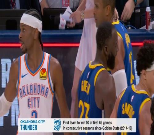 挑落你復刻你!雷霆連續兩個賽季前65場攬50勝比肩1418賽季勇士
