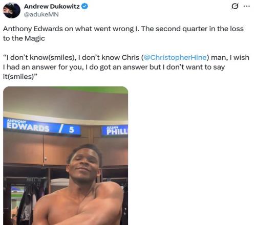 作為球隊核心,賽后談到球隊第二節為何突然進攻斷電時,愛德華茲笑著說自己不知道,然后話鋒一轉表示:“我其實是有答案的,但是我不能告訴你。”