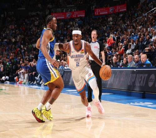 此后雷霆依靠杰林和多特繼續外線轟炸,伊塞亞喬和華萊士輪流強攻。不過佩頓和波杰姆斯基帶隊再度迫近,桑托斯命中三分后,勇士追到只差1分。但節末麥凱恩突然外線發炮,聯合肯威守住領先,第一節雷霆34-28勇士。進入第二節,波杰和波神內突外投,再度追到只差1分,維金斯吃餅,亞歷山大造三分犯規,勇士防守真罕見,陣地戰防守,三分線內竟然沒人!為了夾擊亞歷山大,全部拉到三分線外!伊塞亞喬和肯威打停勇士,桑托斯內突外投回應。后半段杰林+麥凱恩+多特又下三分雨。