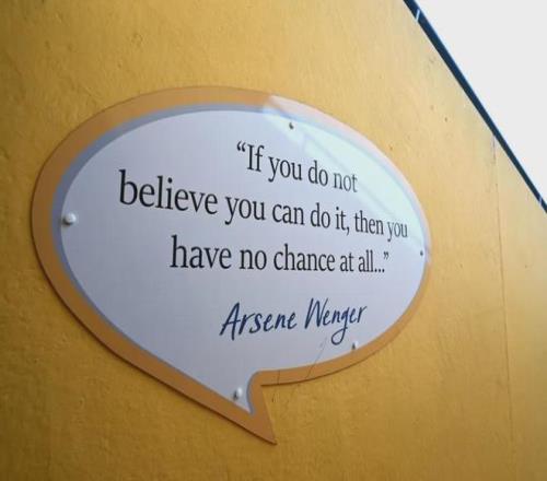 曼斯菲爾德的主場內貼著一句溫格的名言:“如果你都不相信自己能做到,那么你就完全不可能做到……”