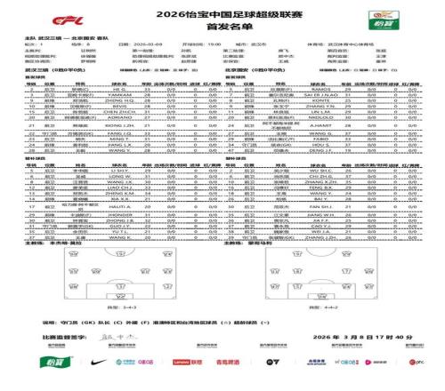 北京時間3月8日19:00,中超第1輪繼續進行,北京國安做客武漢體育中心體育場挑戰武漢三鎮,本場主裁判為甘樹然,VAR裁判為徐強強,賽前雙方首發出爐。