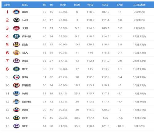 今日比賽后火箭、森林狼排名互換,其他西部球隊(duì)排名不變。