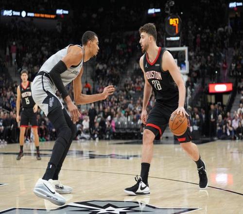 馬刺對防守火箭也很有心得,放空申京和阿門至少五米遠,用文班對位申京,當申京在外線完全不管他,文班蹲坑留守內線,重點加強對禁區的防守力度。