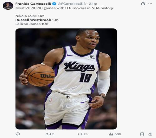 8.威少與韋伯一同成為國王隊史唯二能拿到20+三雙且0失誤的球員。