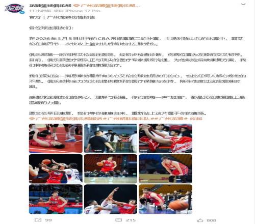 賽后郭艾倫發(fā)文回應(yīng)了,“在醫(yī)院出來了,前交叉韌帶斷了,今天知道了電視里演的有的不對(duì),人在最難過絕望的時(shí)候不是一直哭,哭完是會(huì)笑的。”膝蓋是郭艾倫的老傷了,這幾年一直都是飽受膝蓋傷勢(shì)的困擾,這次前交叉韌帶斷了,應(yīng)該是郭艾倫職業(yè)生涯的轉(zhuǎn)折點(diǎn),再想打球有點(diǎn)難了。郭艾倫的官方年齡是32歲,實(shí)際年齡可能還不止。