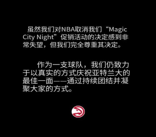 今天,NBA官方宣布,緊急叫停亞特蘭大老鷹原定于3月17日主場比賽期間舉辦的“Magic City”主題推廣活動。