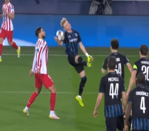 歐冠附加賽輪次的證據確實表明了這一點。例如,在布魯日對陣馬德里競技的比賽中,當球擊中布魯日的若阿金-塞時,盡管這名后衛背對來球,但在VAR回看后,還是判罰了點球。歐足聯稱若阿金-塞的右臂處于“不自然位置且遠離身體”。