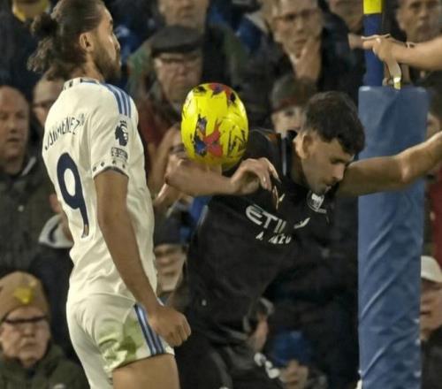這種精細化的處理方式意味著,像曼城的馬特烏斯-努內斯在上個月客場戰勝利茲聯的比賽中在禁區內手球(下圖)這樣的情況,并不會被判罰點球。