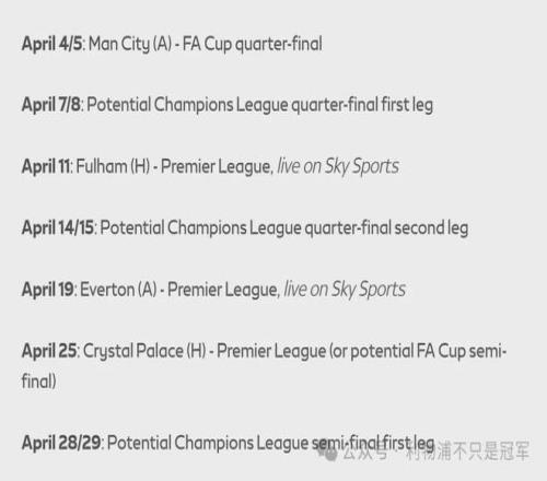 下圖:利物浦4月份的潛在賽程: